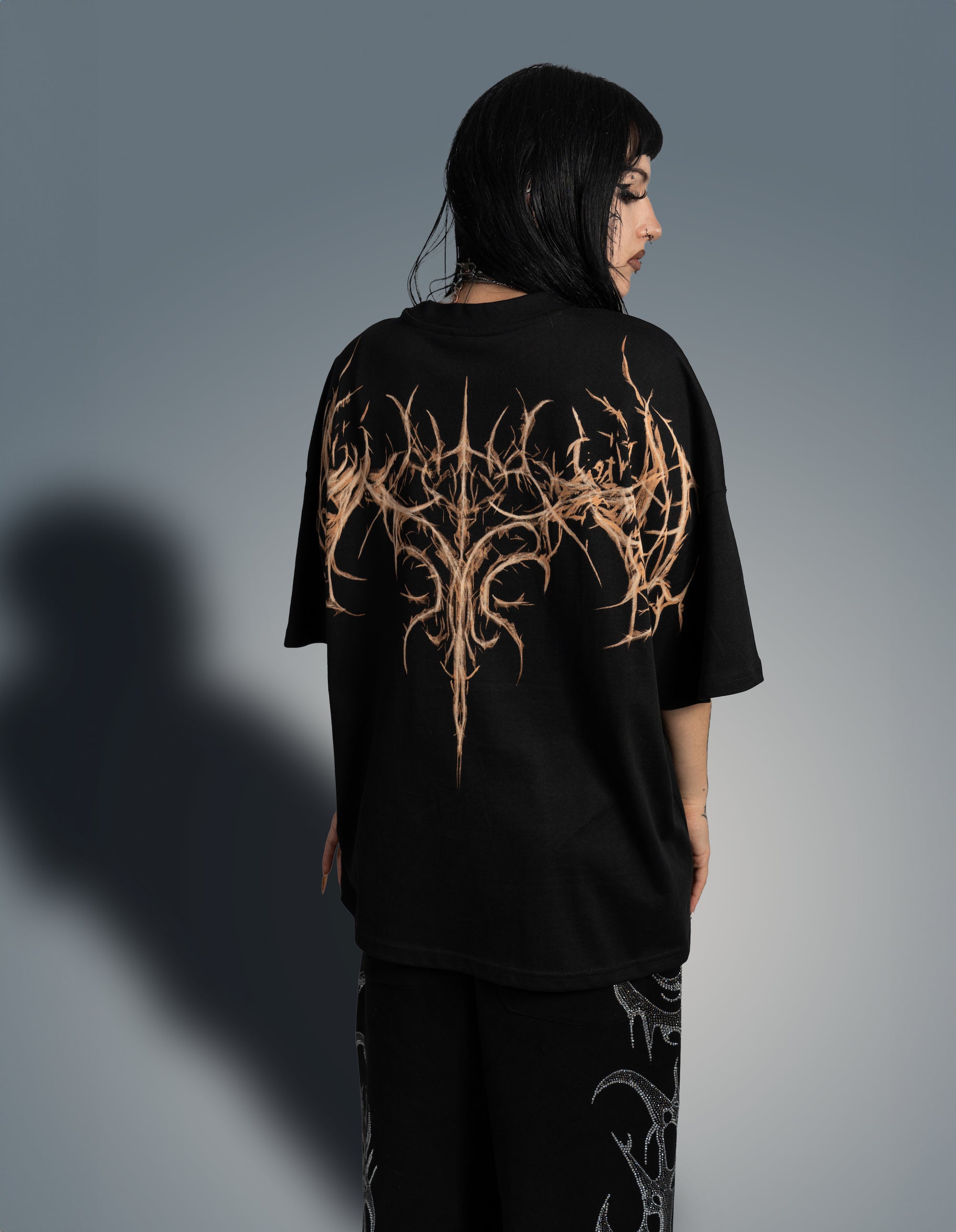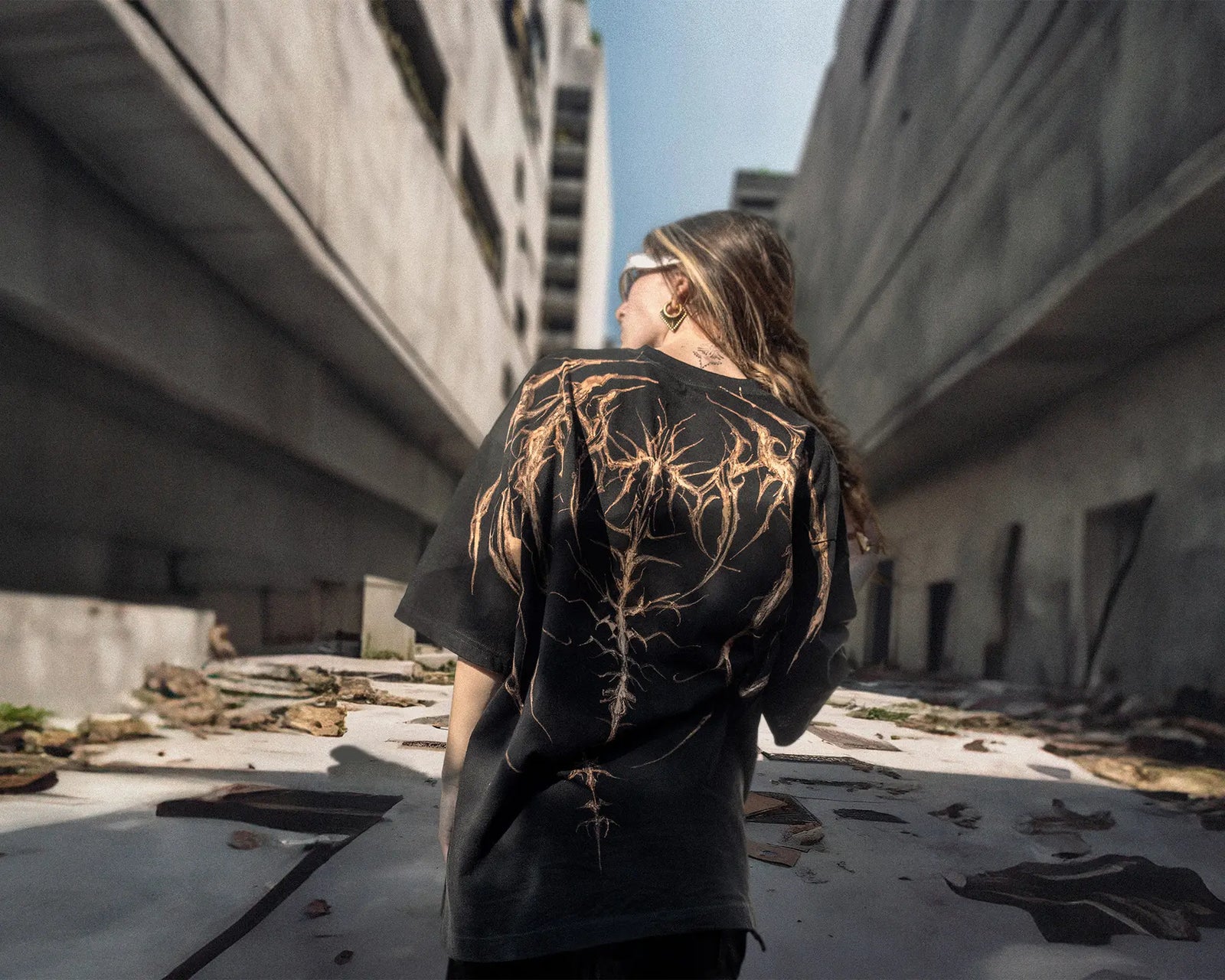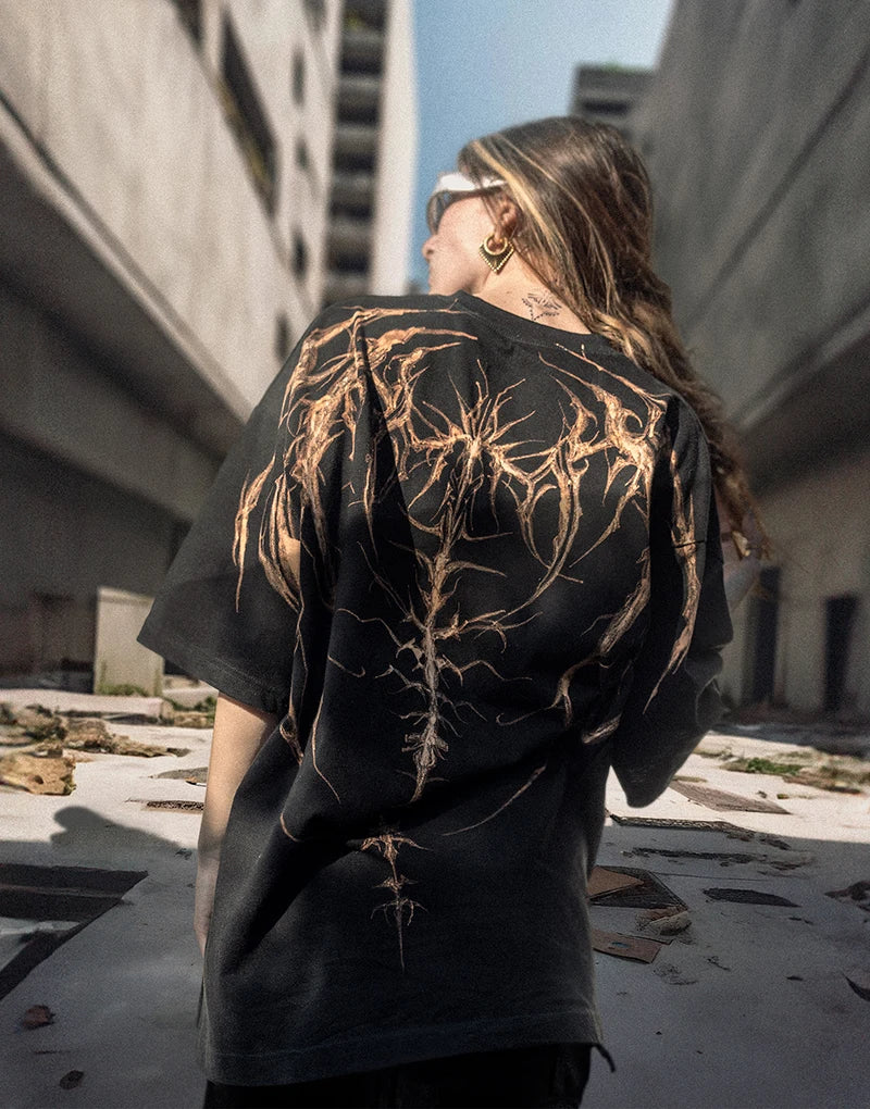 Make a bold statement with our exclusive Black Oversized T-Shirt, hand-painted with bleach to create a truly unique style. This heavyweight t-shirt combines comfort with an alternative edge, capturing the essence of the rave and underground culture.